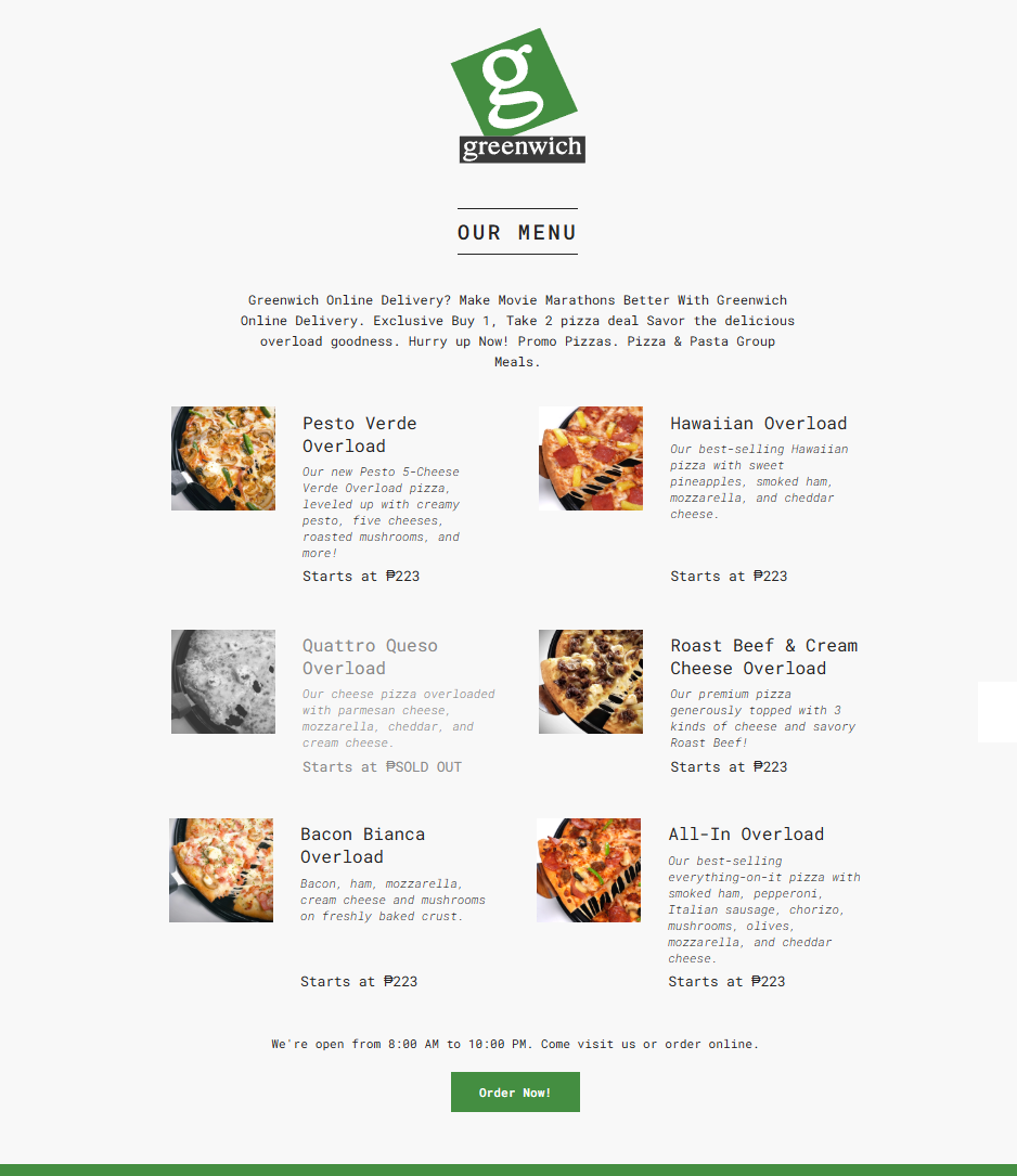 Home Coding Greenwich Pizza Menu in React